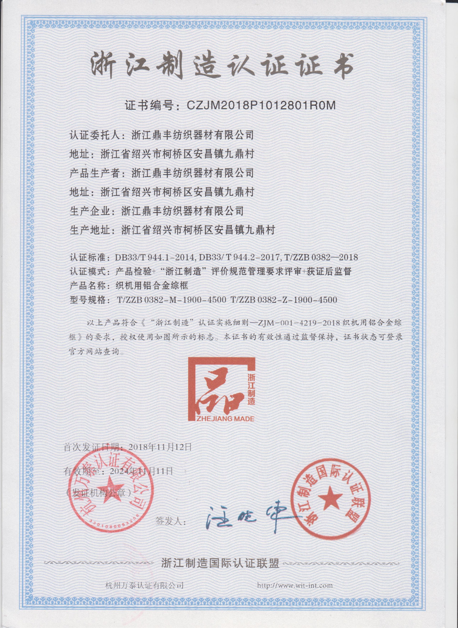 公司現(xiàn)有固定資產(chǎn)6000余萬元,員工300余人,現(xiàn)具有年產(chǎn)噴氣異型筘12萬米,劍桿筘32萬米,噴水筘5萬米,綜框20萬片,鋼片綜2億片,停經(jīng)片1.5億片, 織軸1.2萬套的生產(chǎn)能力。公司“越泉”商標(biāo)被評為“中國馳名商標(biāo)”。公司通過ISO9001 :2015國際質(zhì)量體系認(rèn)證,ISO14001:2015國際環(huán)境管理體系認(rèn)證,ISO45001:2018國際職業(yè)健康安全管理體系認(rèn)證,噴氣織機用鋼筘和織機用鋁合金綜框獲得“浙江制造”品牌認(rèn)證,公司擁有自營進出口權(quán),產(chǎn)品暢銷全國并遠(yuǎn)銷印度、巴基斯坦、土耳其、埃及、哥倫比亞、意大利等國家和地區(qū)。